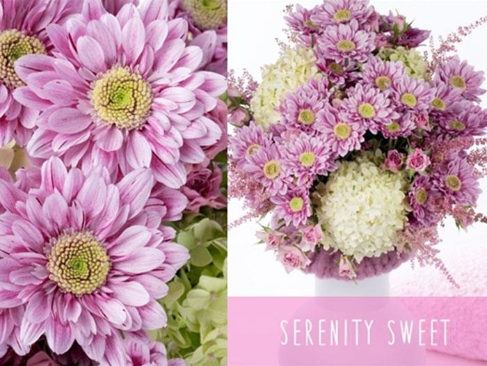 The new spray variety Serenity Sweet is the pink sister of the well-known purple Serenity. The lovely pink Serenity Sweet has a subtle stripe on its petals, which gives this variety a more romantic appearance than its purple sister. The new variety will be introduced by Zentoo on Monday 9th December.