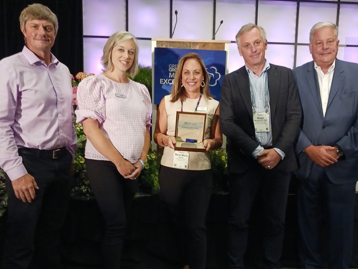 COLUMBUS, Ohio – Dümmen Orange proudly highlighted its IntrinsaTM technology and breeding program at the recently completed Cultivate’22 in Columbus, Ohio. IntrinsaTM was selected as the 2022 Technology of the Year award winner during Greenhouse Grower’s Medal of Excellence program which took place at the Greater Columbus Convention Center. Executives from Dümmen Orange accepted this prestigious honor at a reception where award winners were announced from a variety of categories. Each category was judged by a selection panel of industry experts to choose the best that the plant and floriculture industry has to offer.