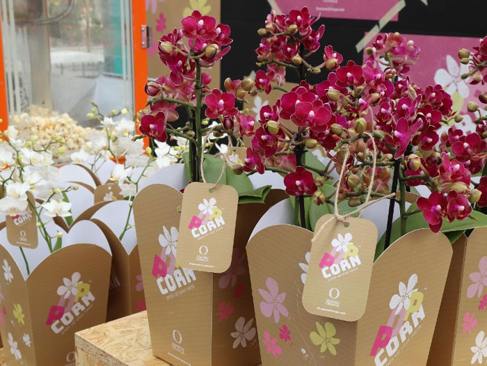 At the FlowerTrials® held from 11 – 14 June, Dümmen Orange launched a new orchid label for its special small-flowered phalaenopsis: Popcorn ‘Pops up your room’. The sector first became acquainted with this new label during the open days. These Popcorn orchids are available in many colours ranging from white and yellow to light and dark pink. Their unique characteristic is their profusion of flowers that are also smaller than those of similar phalaenopsis varieties.