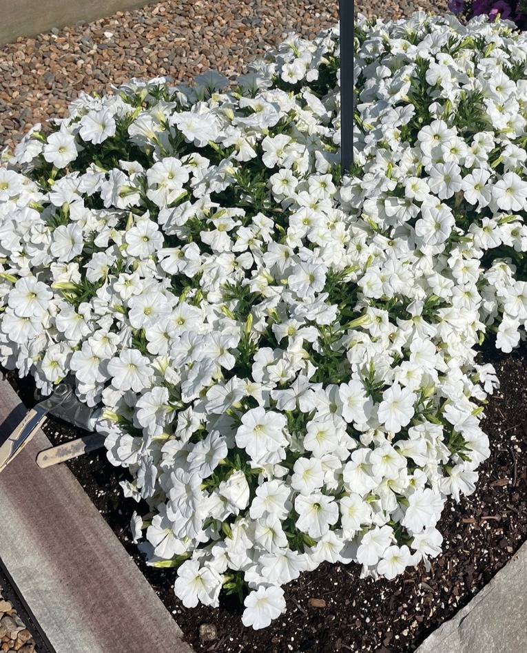 Petunia DuraBloom® White is an improved white variety now powered by Intrinsa®. It is the most durable and floriferous petunia series for year-round performance through a multitude of weather conditions. Daylength neutral and very vigorous, its mounding habits can reach up to 2-feet in height in the landscape and are trailing.