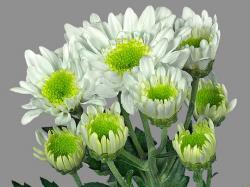 This new Santini is pure white with a striking glittering green heart. They will help each mixed bouquet to become a brilliant composition. Thanks to the contrast of the green heart and the pure white flower ribbons this Santini is also very beautiful as a loner in the vase.