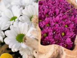 The bicoloured purple-white Disco Club is not only a true addition in the range, but is also an eyecatcher in every bouquet. The pink disbud Hornbill dark will also be displayed. This Chrysanthemum is beautifully large with lots of potential.