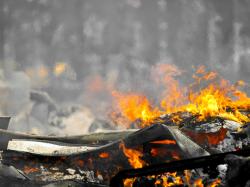 The fire fight was punctuated by explosions from within the shipping and receiving area of the farm's main building. Firefighters said they believed the fire was setting off propane tanks on fork-lift trucks inside the structure.