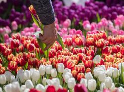 On the first Saturday of March, the first cutting garden full of 100,000 tulips was made available in the heart of San Francisco. The big job of creating this gigantic tulip garden at Union Square began at the crack of dawn: 7:00 a.m. Later, at 1:00 p.m., the event was officially opened by Henk Westerhof, the chairman of Anthos. Everyone could hardly wait to enter the tulip garden and pick a free bunch of tulips. Within three hours they were all picked.