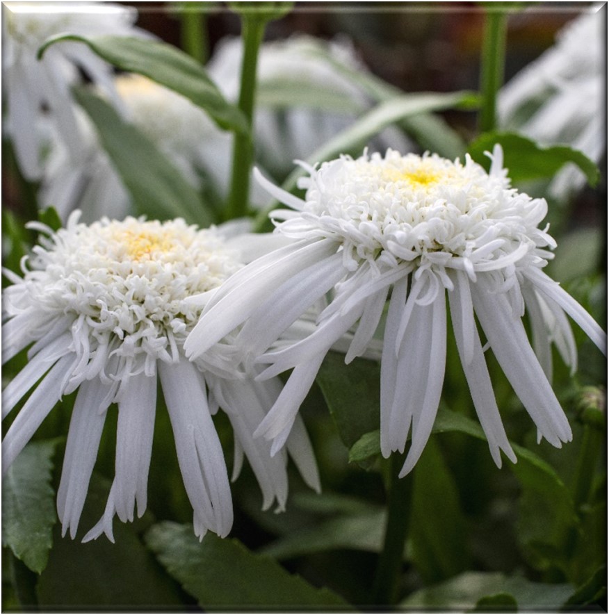 The first-ever groundcover Shasta Daisy as well as the first ever AAS Winner from this breeder! Green Fuse Botanicals’ First Light Perennials is a program of first-year flowering perennials that are daylength neutral meaning earlier  blooms that continue all season long. Large 3 inch flowers boast a second inner frilly bloom adding to the unique look of Carpet Angel.  Growing only to a height of 6 inches, this unique leucanthemum can act as a groundcover spreading up to 20 inches wide. Fantastic branching on this new AAS winner means more flower stems sporting beautiful pure white blooms that look like angels dancing over a carpet of dark green foliage. A little deadheading of spent flowers will reward you with even more blooms. Hardy in zones 4a-10b.