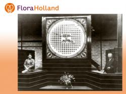 The first generation of mechanical auction clocks bears little resemblance to today's virtual clocks. Yet their purpose and operation remain unchanged: to bring together supply and demand for flowers and plants each day in a focused and transparent manner, in order to elicit the best market price currently available, at the moment that the downwards auction price is stopped with a sale. The technology of these clock systems has been in constant development over the past century. Even in 2011, the auction clock — now projected overhead or remotely accessed — remains a vital sales tool. The future of the auction clock will see ongoing investment not only in digital sales technologies but also in mediating (via FloraHolland Connect) direct transactions for flowers and plants.