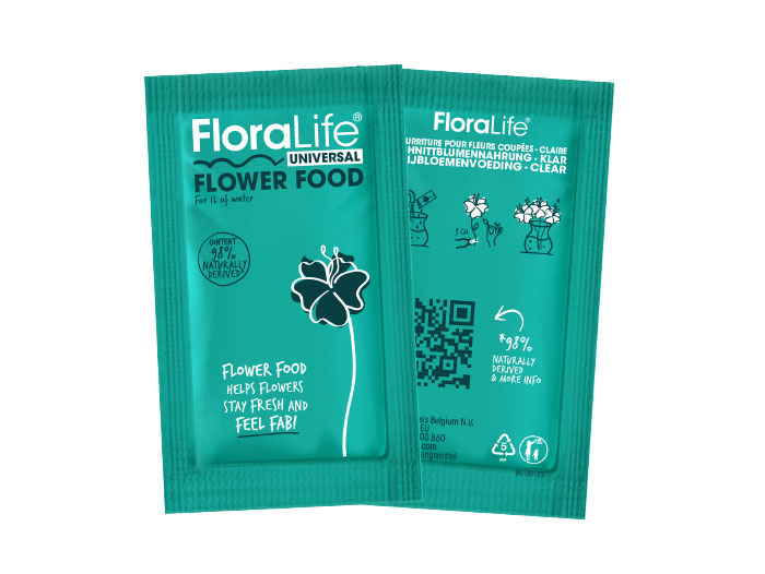 Recyclable polypropylene plastic flower food packets are available in FloraLife® branded packets and for private label.