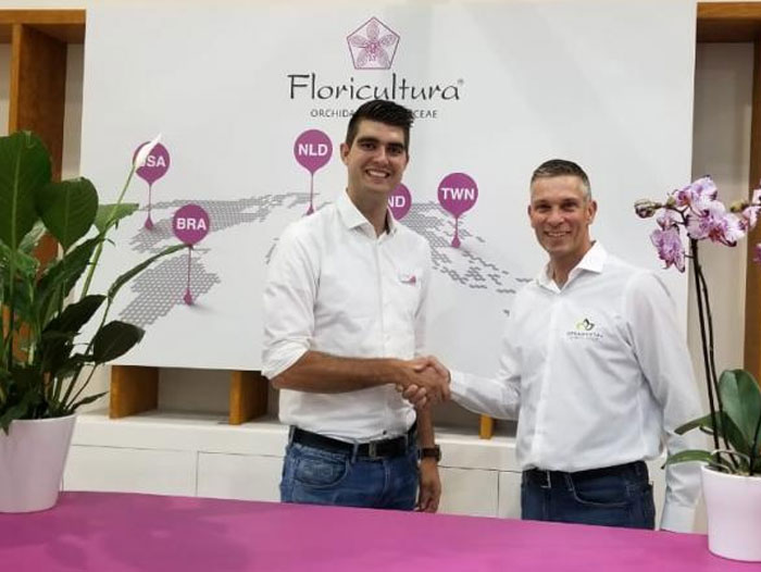 Floricultura and Ornamental Growers Group (OGG) formally ratified their partnership at the OPF trade fair in Mexico City. OGG now acts as a sales agent for Floriculturas Phalaenopsis and Spathiphyllum young plants in Mexico. Marco Heijnen, Floriculturas area manager Latin America and Tammo Hoeksema, CEO of OGG, signed the agreement at Floriculturas new booth.