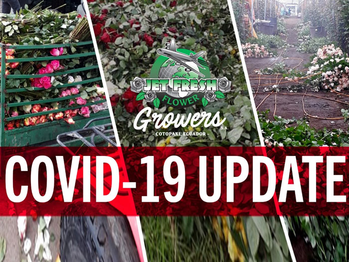 Our boutique rose farm, Jet Fresh Flower Growers, S.A. in Cotopaxi, Ecuador is still maintaining itself with a reduced staff on-site that is still caring for our plants and cutting all unused production.