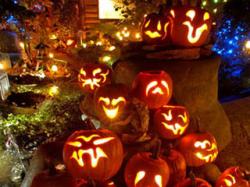 A: With just a white sheet and a large pumpkin, you can do wonders. Cut a large crescent moon from cardboard or foam-centered board to use as the background, and paint it black. To make a ghost, crumple newspaper into a medium-sized ball, drape with a sheet and suspend it in front of the moon. To make this ghost appear to fly, attach lengths of fishing line to each corner of the sheet and tack to the ceiling or a nearby wall. In front of the ghost, place the biggest pumpkin you can find, or group a bunch of medium and small pumpkins.