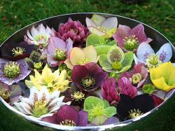 Photo Caption: A bowl of floating hellebore blooms plucked from the array at