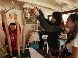 Photo Caption: Siblings Carly, right, and Candice Shimizu, left, prep an Ikebana