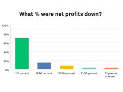 Forty-nine percent of all respondents said first and second quarter gross sales were higher this year, compared to the same period last year. About 26 percent said they were roughly the same. Twenty-two percent said sales were down comparatively. (Two percent weren’t sure.