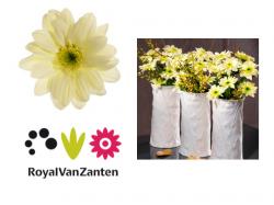 Gabbana Cream is a crème chrysanthemum that is available at Flora Holland Naaldwijk and Aalsmeer as of Thursday, August 16. Gabbana Cream really enjoys being the centre of attention. And for good reason; it is loved by florists because of its many uses and also by consumers for its long life and special colour. Its creamy white ray flowers complement the bright green centre in a glamorous way!