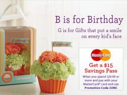 Through the Birthday Gift Center presented by MasterCard, consumers choose from a wide variety of thoughtful gifts, including fresh floral bouquets to gourmet gift baskets. Within the Birthday Gift Center, consumers will find a gift guide to help them select the perfect gift.