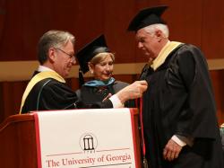 University of Georgia alumni Maxine and Bob Burton have been awarded the Medallion of Honor by the University of Georgia College of Agricultural and Environmental Sciences. Each year, the honor is presented to an outstanding individual or couple in recognition of their dedication to the college’s mission and to express gratitude for the time, advice, support, and in?uence they have provided. The Burtons were recognized at the recent commencement ceremony for the college, where they gave the keynote address to the graduates.