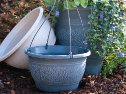 Exclusively from McConkey, the Charlotte Collection features a 14 inch tall planter, 14 inch color bowl and 12 inch hanging basket. Current colors include charcoal, sage and sandstone. To order call 800-426-8124 or e-mail sales@mcconkeyco.com.