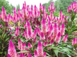 The name celosia is derived from the Greek word for "burning," because the magenta red flower spikes of plume types look like flames.