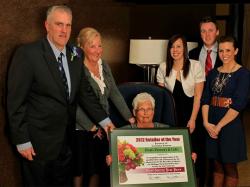Photo Caption: (LtoR) Douglas Vos, Ginny Vos, Katherine Vos, Katie Vos, Michael Vos and Sarah Vos with the 2012 Michigan Floral Associations Retailer of the Year Award