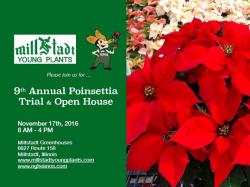 The Open House will be showcasing a comparison trial of up to 200 Poinsettia varieties from 4 di?erent breeders: Beekenkamp, Dummen, Ball/Selecta, & Syngenta ?nished naturally and short day. Breakfast and Lunch will be sponsored by the Breeders.