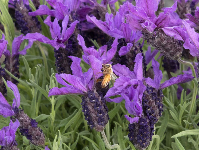 Spanish lavender has distinctive blooms with flag-like flowers called bracts. Spanish lavender, recommended for Zones 7-9, blooms almost constantly from mid-spring to late summer in colors that include white, pink, and purple. Although the flowers aren’t as fragrant as other types, its silvery foliage provides beautiful scent. Javelin Forte™ Deep Purple Spanish Lavender was selected for its robust growth and large purple flowers. It can also handle cooler, wet winters.