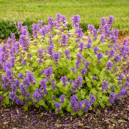 ‘Chartreuse on the Loose’ is a perennial with season long interest perfect for lining the front of the border. The foliage allows for a full three seasons of interest with bright chartreuse yellow leaves. Clusters of lavender blue flowers are produced just above the foliage and appear all summer long. Unlike most catmint, ‘Chartreuse on the Loose’ will continue to produce flowers without being cut back. Hardy in USDA zones 3-8, this catmint is from Walters Gardens.