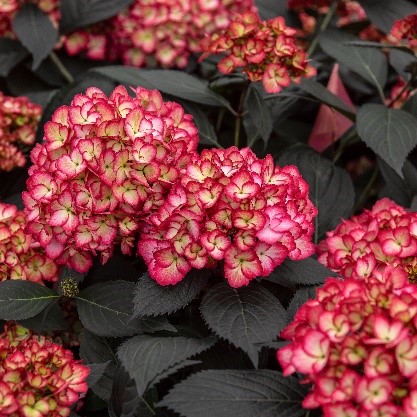 Eclipse® Hydrangea is a true dark-leaf mophead hydrangea that offers season-long beauty with intense, dark purple leaves that hold their color, even in sunny warm climates. The striking foliage, paired with gorgeous dark purple or cranberry-colored blooms, will pair perfectly with anything in the garden and are sure to make a dramatic impact. Maturing at 3-5 feet tall and wide, Eclipse® will stand out, whether used as a focal point in the garden or in decorative containers. From Bailey Nurseries/First Editions and is hardy in zones 5-9.