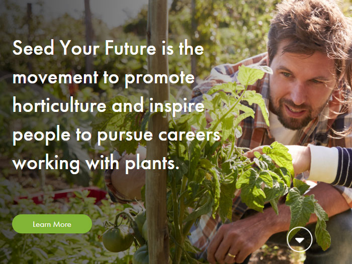 Seed Your Future is a national movement to promote horticulture and inspire people to pursue careers working with plants. Supported by more than 200 partner organizations, we envision a U.S. where everyone understands and values the importance of plants and the people who work in the art, science, technology and business of horticulture. For information, visit us at SeedYourFuture.org.