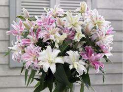 The double flowers are beautiful, fragrant and are bred not to produce pollen. If you grow lilies and use them as cut flowers, you know what it's like to have the pollen dropping under the vase creating a mess.