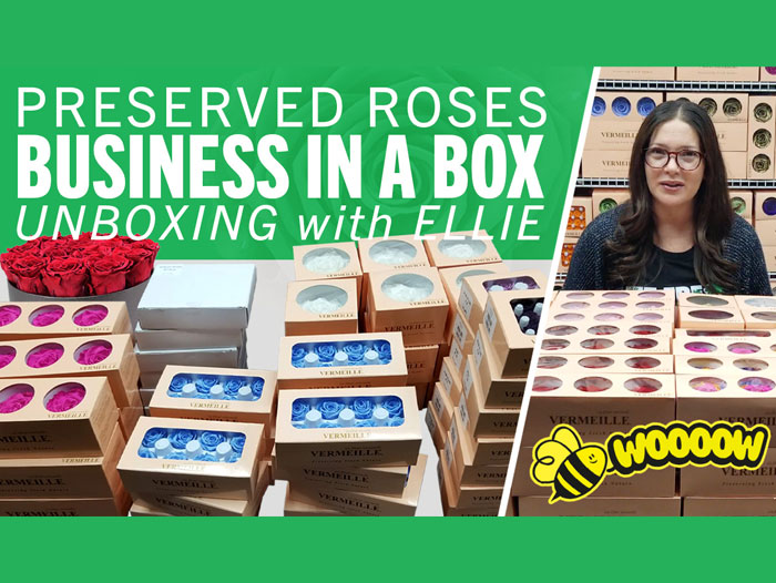Interested in preserved roses, but you’re not sure where or how to begin? Jet Fresh Flower Distributors has an exciting new starter kit for those looking to get into in the preserved rose business. Presenting “Business in a Box” by Vermeille Presh, this exclusive program is available only from Jet Fresh Flowers in Miami, and features a great selection of preserved roses to serve your various wholesale flower needs.