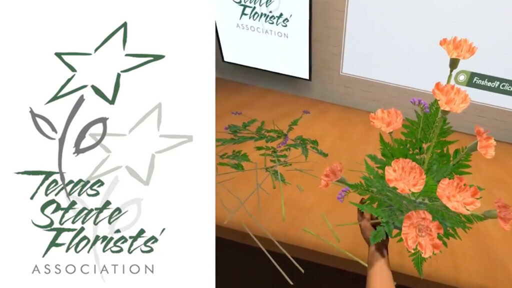 LEANDER, Texas — The Texas State Florists’ Association (TSFA) is pleased to announce the launch of a new virtual reality (VR) program designed to support floral design students. Compatible with the Meta Quest line of VR headsets, the program includes expert instruction as well as immersive practice and testing modules for the symmetrical arrangement and boutonniere designs required to pass TSFA Level 1 Floral Certification.