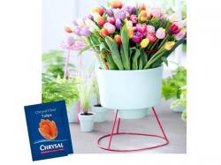 Who is not fond of tulips! The tulip comes in many colours and shapes and smells like spring. Truly a flower that makes you happy in the winter and spring. There is not only one type of tulip: the choice is enormous, from many colours to double and fringed petals. The tricks is to combine these with each other, or even with other flowers. Often it is seen that the tulips grow faster than the other flowers in the bouquet. Our advice is to look for tulips that have been treated with Chrysal BVB Plus.