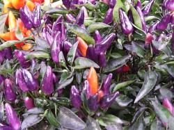 Ornamental peppers produce colorful fruit – which are actual peppers – in a wide range of sizes, forms and colors. Purple, orange, yellow, red, brown, blue and white are common. Multiple colors can appear on the same plant.