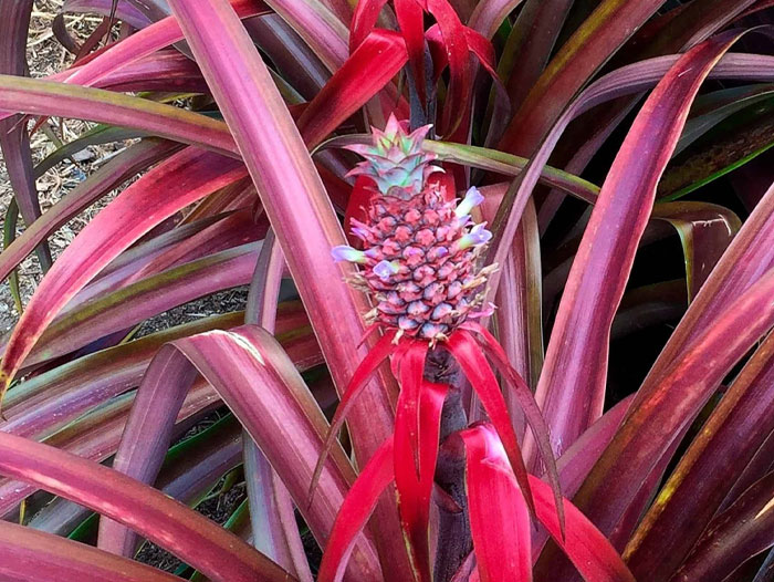 - ‘Mila’ Pineapple – Available as a new trade and consumer release in 2025 through Southern Living® Plant Collection. This unique pineapple plant boasts striking orange, red, and purple variegated foliage, complemented by a compact growth habit that matures to 2–3 feet tall and wide. Adding to its charm, it produces miniature red edible fruit. Perfect for full sun in USDA Zones 8 – 10.