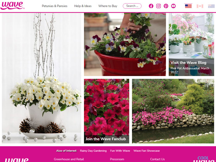 • The new WaveGardening.com also customizes the site experience for different market regions: U.S., Canadian, and Australian Wave Fans will see seasonal content for a more tailored visit.