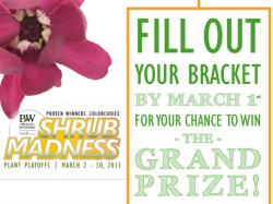 There are three ways in which the voting public will have the opportunity to score dozens of prizes. Every day, a voter will be drawn to win competing plants. At the end of the competition, five voters will be randomly selected to win a collection of the last four plants standing, known as the Floral Four. New this year, whoever’s bracket prediction is closest to the tournament’s results will also win a grand prize pack: the Floral Four and Plant Geek swag bag. To qualify for the grand prize, brackets must be submitted on www.ShrubMadness.com by March 1, 2015, before the start of the competition.
