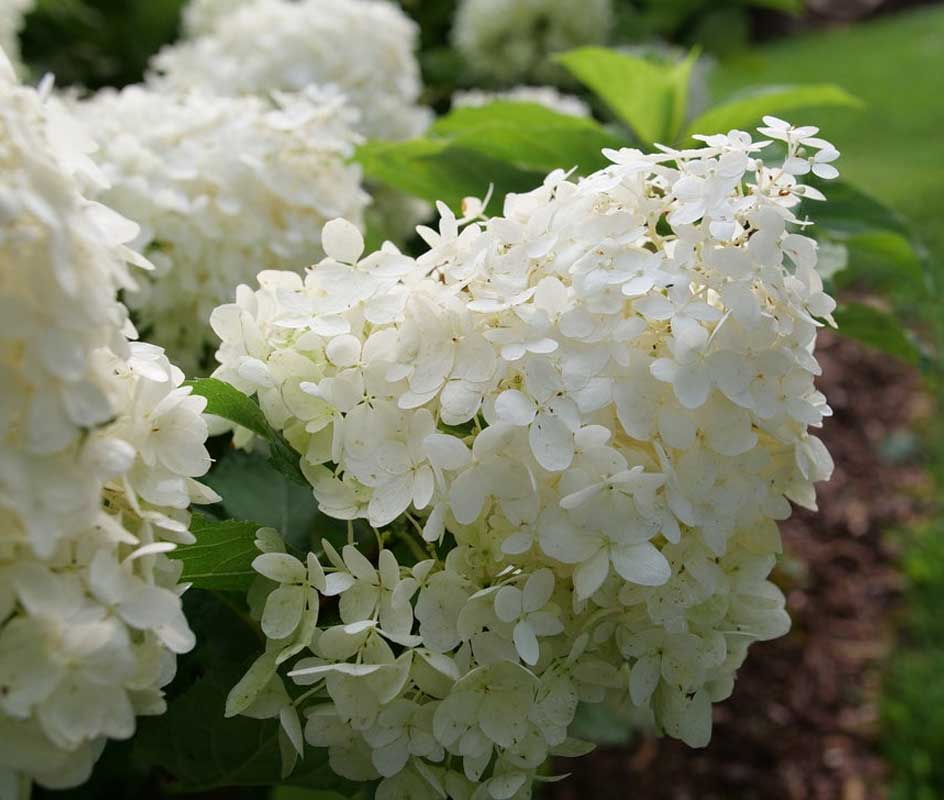- PUFFER FISH® Hydrangea paniculata– Think of this new selection as a larger, more puffed-up Bobo®, with fluffy white blooms that engulf the entire plant, nearly obscuring the foliage. The unique blossoms age to lime green rather than pink. Hardy in zones 3-8.