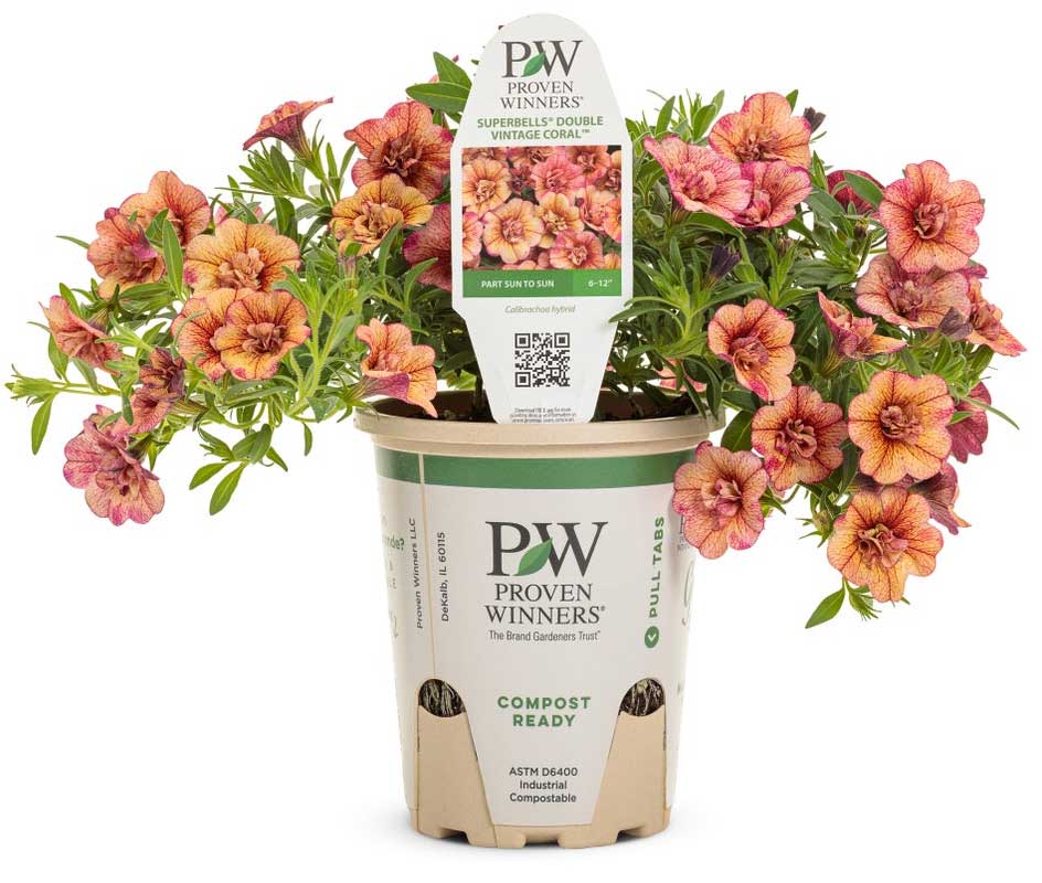 - SUPERBELLS® Double VINTAGE CORAL™ Calibrachoa – Everything vintage is trending with consumers, and this antique amber- orange veined, fully double-flowered calibrachoa is everything they are looking for. Received top marks in Florida trials for its robust habit and seasonlong performance.
