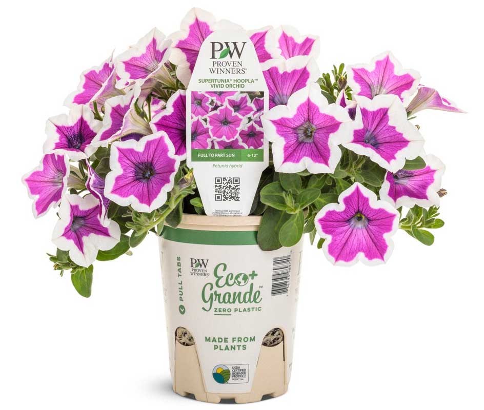 - SUPERTUNIA® HOOPLA™ VIVID ORCHID™ Petunia – See what all the hoopla is about! This picotee patterned petunia is the best Proven Winners has trialed in years. It meets Supertunia standards for seasonlong performance without deadheading, has a well-branched habit and exhibits a consistent, bold color pattern.