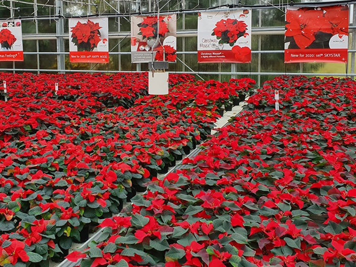 Customers were invited individually to have a look at our Poinsettia highlights – from our slightly different Poinsettia Christmas Mouse® with round bracts and suitable marketing concept, to our strong red varieties such as the Christmas Universe with its intense dark red colour and good foliage quality, to our highlight SkyStar® with white dots on red bracts, colourful Princettia® varieties and exciting novelties 2021.