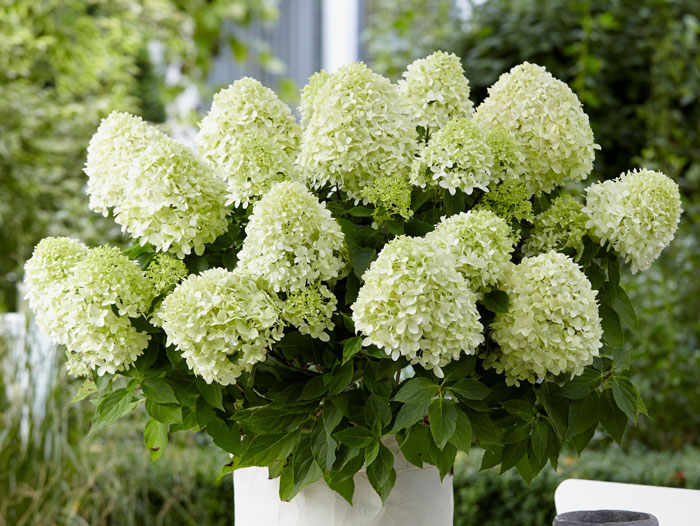 Registered for the novelty examination has been, to start with, Hydrangea paniculata Little Spooky (‘GRHP08’PBR). It is a dwarf hydrangea that only grows about 50 cm high and 30 cm wide and therefore brings the ongoing hydrangea trend to narrow balconies and into smaller borders. It is the right choice for mass planting in public spaces, too, as it is winter hardy up to -25° Celsius and tolerable to pruning. Little Spooky grows in sun and half shade and in all kinds of soil and carries full round panicles with white blossoms in summer.