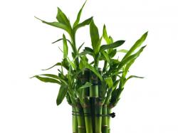 The name lucky bamboo is a bit of a misnomer; it's not a true bamboo. Instead, it's a type of Dracaena and is more closely related to corn plant (the houseplant), annual spikes (sold in planters with geraniums and other flowers in spring), and dragon tree. It is, however, considered lucky as it brings the elements together: wood (the plant's stem); water (the water it grows in); earth (the rocks that support it); fire (the red ribbon often sold with it); and metal (the container it's in).