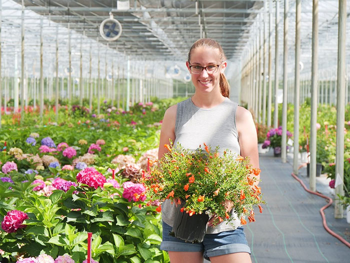 Megan Mathey came to Grand Haven’s Spring Meadow Nursery in 2013 after completing her Masters of Science in Horticulture, Breeding and Genetics at Oregon State University. Her future was destined for success, spanning from working at her hometown nursery to her current occupation, where one of her very first introductions, Peppy Le Pom™ ornamental pomegranate received a 2019 Green Thumb Award by the Direct Gardening Association.