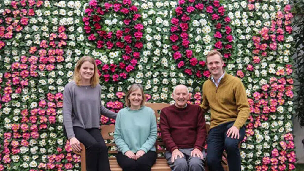 Celebrating 90 years, The Squire family attend Squire’s annual Plant Show. Sarah Squire – Chairman (second from left) with her father, Colin Squire – Chairman Emeritus (second from right) with Sarah’s children, Felicia and Ben Baily. (Photo Credit: Squire's Garden Centres)