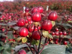 Sun Valley is growing the versatile and oft-used botanical, Hypericum. Before my humble beginnings here on the farm, I had never heard of this plant, much less seen it out and about. But now that I've grown wise to the ways of the flower, I see the unique berries of this plant EVERYWHERE.