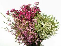 The plant is endemic to western Australia and the scientific genus is Chamelaucium. The flowers are small and have five petals and ten stamens. A large amount of blooms grow on each woody stem, making this one of the ideal filler flowers for the floral industry. Over the last 30 years or so waxflower has adapted to the Southern California / Baja growing climate. The development of additional varieties that start the season a bit earlier and extend the great quality a bit later are now able to provide a substantial filler and scent for winter and spring vases.