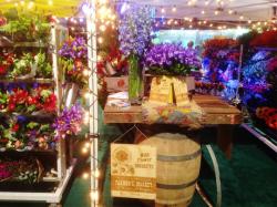 We covered our booth in rustic wooden signs, lights, and thousands of American-grown flowers–our own World of Color set to wow the crowd. Our booth was styled after a Farmer's Market with three distinct themes: