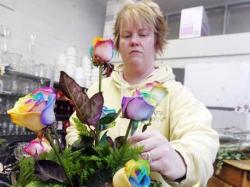 Photo Caption: Tara Douglas prepares a rose display at Myrtle Flowers on Dorr