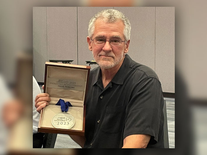 Syngenta Flowers Senior Breeder Todd Perkins received the 2023 Medal of Excellence Industry Achievement Award. The Industry Achievement Award recognizes the lifetime accomplishments of individuals and organizations that have devoted their life’s work to the mission of advancing plant varieties and the floriculture industry.