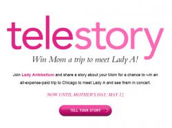Launching today, the “Telestory” contest rewards the online sharing of your favorite Mom memories with the opportunity to win fabulous prizes for you and your Mom. Go to Lady Antebellum-Telestory contest page  or Teleflora's Facebook page from now until May 12 to watch Lady Antebellum’s band members’ favorite Mom moments and enter your own Mom story to win.